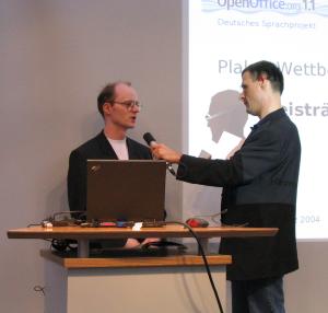 Hier wurden zwei Vorträge zu OpenOffice.org gehalten. Thomas Dierks informierte über "Betrieb von OpenOffice.org in großen Netzen" und Thomas Sprickmann zum Thema "Migration auf OpenOffice.org". Im Rahmen der Siegerehrung des Plakatwettbewerbs präsentierte Angelika Gößler vor einem breiten Publikum die Funktionen der einzelnen Module von OpenOffice.org. Ein souveräner Moderator Thomas Keup führte durch das Programm und stellte die Projektverantwortlichen und Sponsoren der Preise im Gespräch vor.