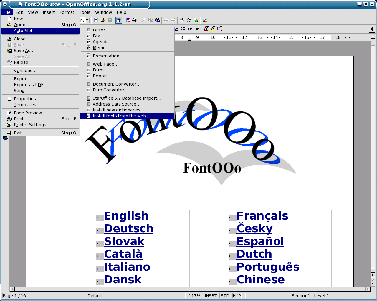 Screenshots: OpenOffice.org 1.1 - Diverse Functions