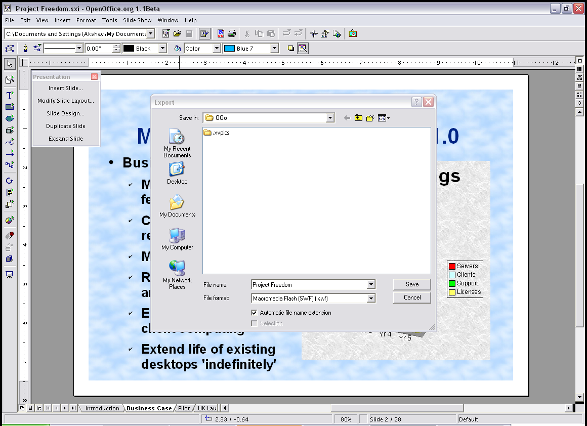 OpenOffice.org 1.1 New Features. Taken on Windows XP and Linux.