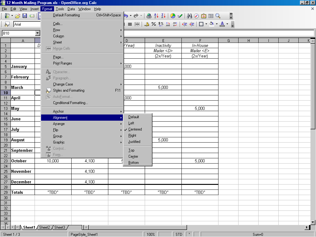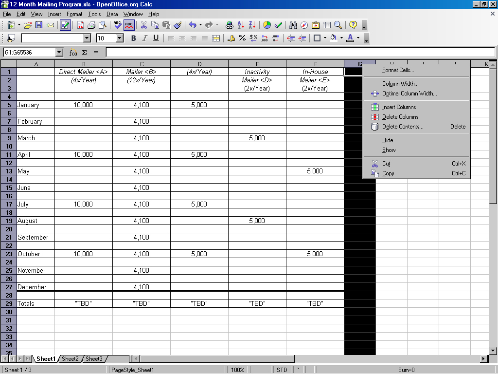 Screenshots: OpenOffice.org Snapshot Build 1.9.m65 - Calc