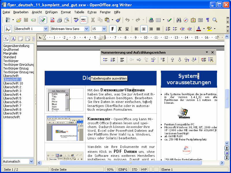 Screenshots: OpenOffice.org Snapshot Builds 1.9.m69 / 1.9.m72 - German