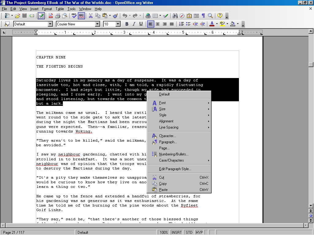 Screenshots: OpenOffice.org Snapshot Build 1.9.m65 - Writer